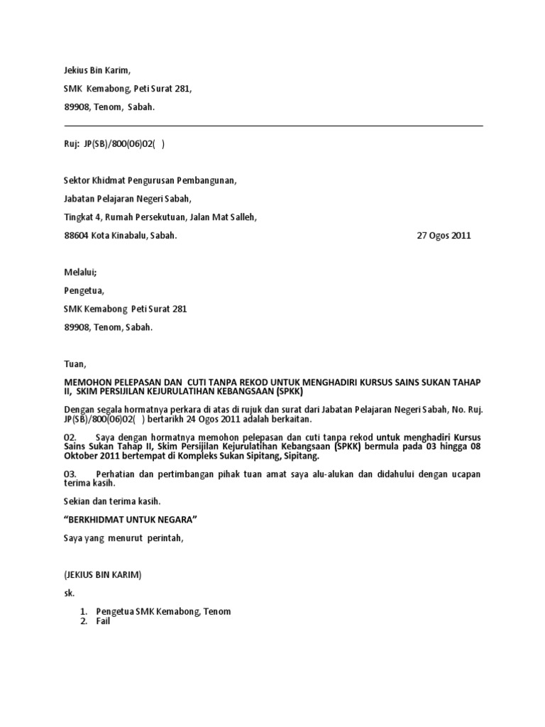Surat Mohon Cuti Tanpa Rekod Pdf